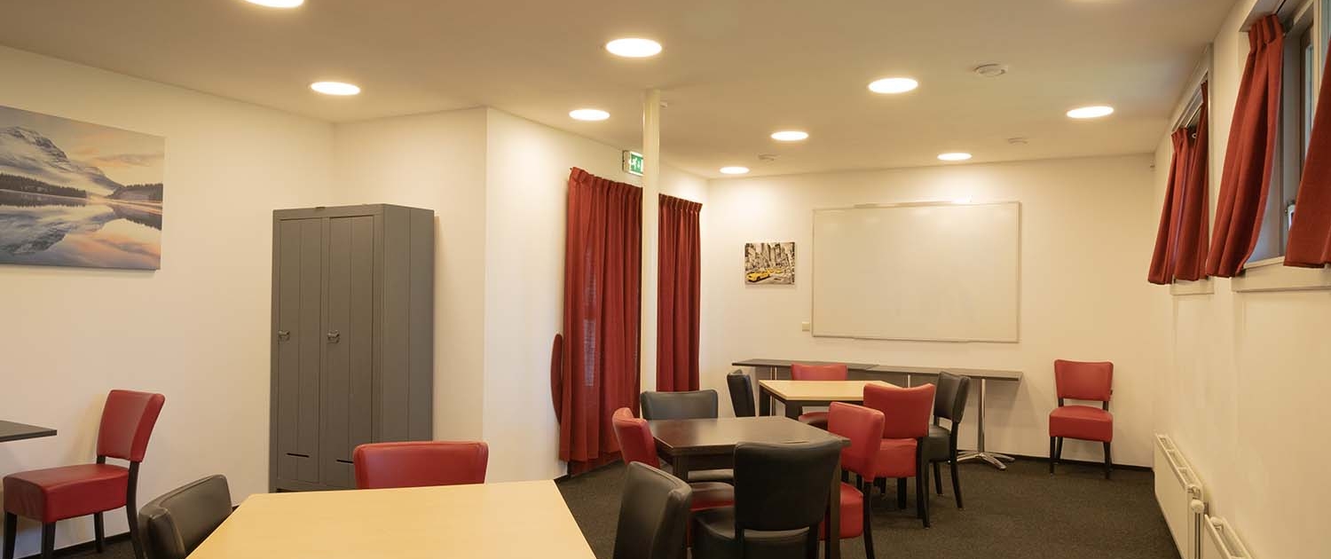 De kleine zaal bevindt zich achter in het gebouw en heeft een oppervlakte van circa 50 vierkante meter. Deze ruimte is ideaal voor een vergadering of een buffet. Er is standaard een whiteboard aanwezig in deze zaal.